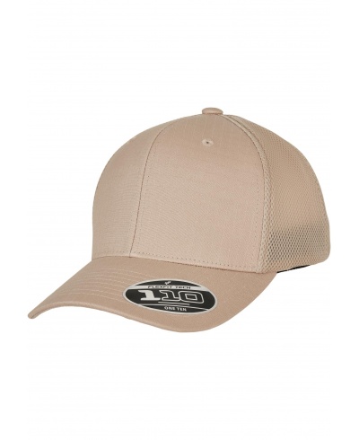 Die Kappe bietet ein dichtes Ripstop-Material auf den beiden Vorderteilen und einen gebogenen Schirm mit Ziernähten. Die Rückseite ist aus transparentem Mesh gefertigt. Ein Snapback-Verschluss macht die individuelle Größenanpassung einfach. Die Flexfit-Kappe besteht aus Baumwolle, Elasthan und Polyester-Mesh und ist eine Einheitsgröße für alle.