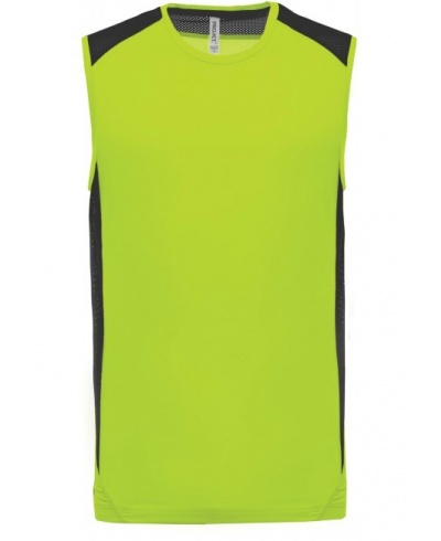 92% Polyester / 8% Elasthan 160 g/m². Einsätze aus Netz 94% Polyester / 6% Elasthan 180 g/m². Schnelltrocknendes und trageangenehmes Material. Für zahlreiche Sportarten konzipierter Schnitt. Einsätze aus Netz an Seiten und Schultern für mehr Bewegungsfreiheit.
