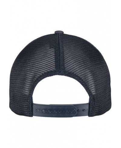 Diese Trucker Cap bietet ein bewährtes, duales Design: Die Vorderseite besteht aus Baumwolle, die Rückseite aus transparentem, weißem Polyester-Mesh. Dank der smarten, integrierten Technik garantiert die Cap optimalen Tragekomfort: Neben dem Flexfit-Band steht ein farblich passender Snapback-Verschluss zur individuellen Größenanpassung bereit. Abgerundet wird der Truckercap-Style durch einen vorgebogenen Schirm mit acht Ziernähten.