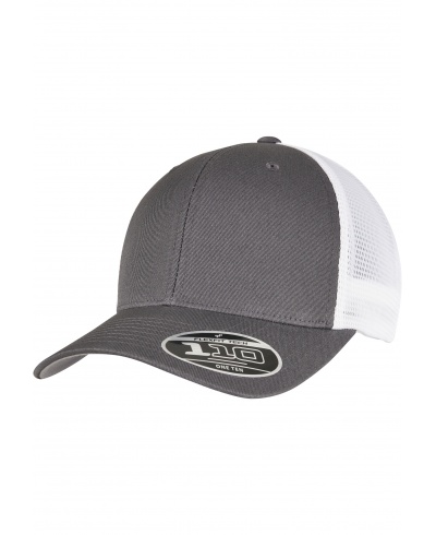 Diese Trucker Cap bietet ein bewährtes, duales Design: Die Vorderseite besteht aus Baumwolle, die Rückseite aus transparentem, weißem Polyester-Mesh. Dank der smarten, integrierten Technik garantiert die Cap optimalen Tragekomfort: Neben dem Flexfit-Band steht ein farblich passender Snapback-Verschluss zur individuellen Größenanpassung bereit. Abgerundet wird der Truckercap-Style durch einen vorgebogenen Schirm mit acht Ziernähten.