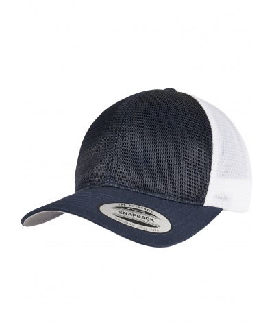 Eine moderne Cap im klassischen Two-Tone-Look, angelehnt an den Trucker-Cap-Style. Front und Schirm weichen farblich von der Rückseite ab. Praktisch für heiße Tage ist das rundum atmungsaktive Mesh-Material. Für besten Tragekomfort kommt die Einheitsgröße mit einem Snapback-Verschluss am Hinterkopf, der ebenfalls farblich passend ist. Die Cap besteht aus Baumwolle und Polyester und wird durch einen vorgebogenen, achtfach vernähten Schirm abgerundet.