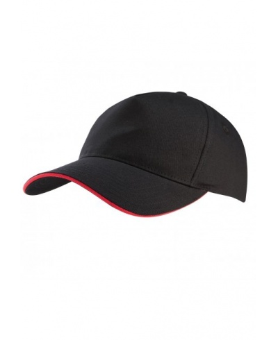 100% stark gebürstete Baumwolle. Laminierte 5-Panel-Kappe. Sandwichschirms mit kontrastfarbenem Mittelstück. Baumwoll-Schweißband. Größenverstellbar durch Metallschnalle.