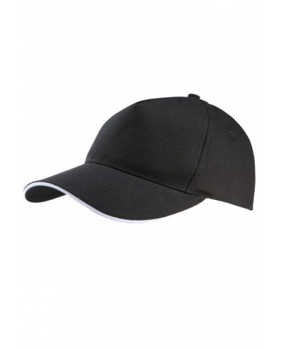 100% stark gebürstete Baumwolle. Laminierte 5-Panel-Kappe. Sandwichschirms mit kontrastfarbenem Mittelstück. Baumwoll-Schweißband. Größenverstellbar durch Metallschnalle.