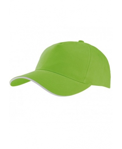 100% stark gebürstete Baumwolle. Laminierte 5-Panel-Kappe. Sandwichschirms mit kontrastfarbenem Mittelstück. Baumwoll-Schweißband. Größenverstellbar durch Metallschnalle.