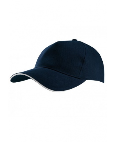 100% stark gebürstete Baumwolle. Laminierte 5-Panel-Kappe. Sandwichschirms mit kontrastfarbenem Mittelstück. Baumwoll-Schweißband. Größenverstellbar durch Metallschnalle.