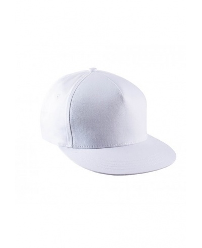 100 % Baumwollserge. 5 Panel-Kappe. Flacher Schirm. Kunststoffschnalle zur Weitenregulierung.