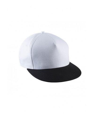 100 % Baumwollserge. 5 Panel-Kappe. Flacher Schirm. Kunststoffschnalle zur Weitenregulierung.