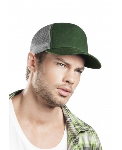 Vorderes Panel und Schirm aus 100 % dicker, gebürsteter Baumwolle, Netz aus 100 % Polyester. 5 Panels. Größenverstellbar durch Kunststoffschnalle.
