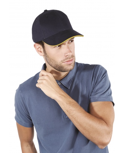 100% stark gebürstete Baumwolle. Schirm vorgeformt. Klemmverschluß.