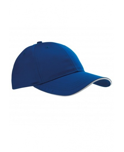 35% Baumwolle / 65% Polyester. 6-teilige laminierte Kappe. Kappe mit Sandwich-Schirm. Baumwoll-Schweißband und Klettverschluß.