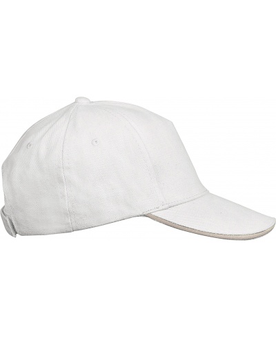 100% gebürstete Baumwolle aus ökologischem Anbau. 4 Luftösen. Sandwichschirm mit Kontrastfarbe im mittlerem Paneel. Größenverstellbar durch Klettverschluß.