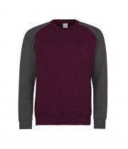 JH033 Baseball Sweatjh033-burgundy-charcoal