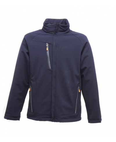 Stretch-Softshell-Außenseite mit warmer Rückseite, wasserdichter und atmungsaktiver Isotex 5000-Membran-Dropliner, Polyesterfutter an der Kapuze, windabweisend, verschweißte Nähte, einklappbare Kapuze, reflektierende Paspelbesätze an den Taschen, 2 untere und 1 wasserabweisende Brusttaschen mit Reißverschluss, verstellbare Ärmelbündchen, verstellbare Stoßkordel Saum, verdeckter Reißverschlusseinstieg im Futter für Stickzugang