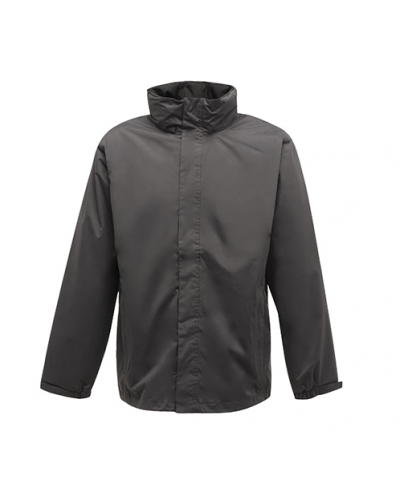Wasserdichtes Hydrafort 5000-beschichtetes Peached-Polyester, Polyester-Netzfutter, winddichtes Gewebe, verschweißte Nähte, verdeckte Kapuze mit Regulierer, 2 untere Reißverschlusstaschen, 1 Innentasche mit Kopfhörerkabelzugang, verstellbare Ärmelbündchen, verstellbarer Shockcord-Saum, interner Reißverschluss-Stickzugang
