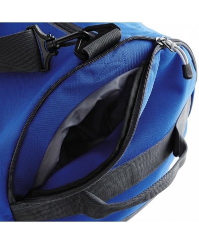 Fassungsvermögen: 58 Liter; TearAway-Etikett für einfaches Rebranding | Wasserabweisendes Gewebe, Netzballentasche außen, Schuhtunnel/Nasstasche, authentische Metall-Luftösen, Wertsachentasche mit Reißverschluss vorne, RV-Endtasche, Netztasche außen, abnehmbarer, verstellbarer Schultergurt mit Polster, Tragegriff, gepolsterter Handgriff
