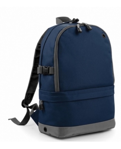 Material: 600D/420D Polyester-Kombination; Maße: 31 x 44 x 16 cm; Fassungsvermögen: 18 Liter; TearAway-Label für einfaches Rebranding, Laptop-kompatibel bis 15,6", gepolstertes Laptopfach, Medientasche & Kopfhöreranschluss, Nassfach, Doppelfach-Design, Organizer-Fach, elastische Flaschenschlaufe, authentische Metall-Lüftungsösen, Kompressionsriemen, gepolsterte Rückwand, gepolsterte verstellbare Schultergurte, Haltegriff