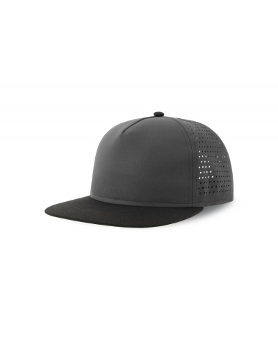 Die strukturierte Freizeitmütze besteht aus recycelter Polyester-Mikrofaser und Twill, mit recyceltem Polyester am Schirm. Die Kappe verfügt seitlich und auf der Rückseite über präzise lasergeschnittene Löcher.