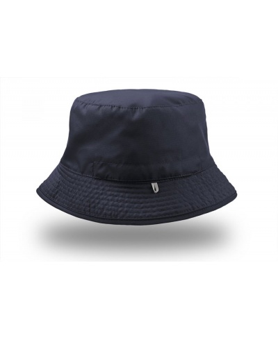 Fischerhut aus Nylon, wendbar mit kontrastierender Innenseite und einfach in einer bequemen Tasche zusammenfaltbar.