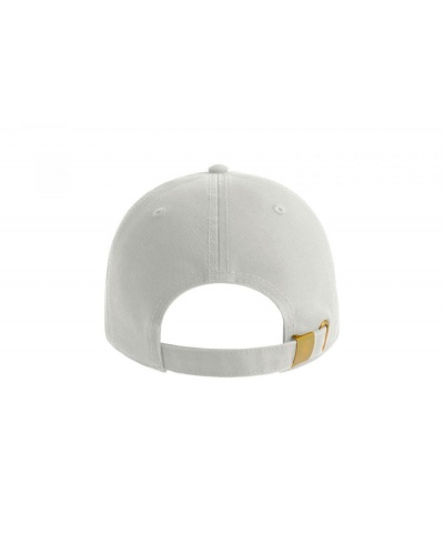 Die unstrukturierte Kappe besteht aus einer Mischung aus recycelter und Bio-Baumwolle. Befestigung hinten mit einer Schnalle mit Metallloch.