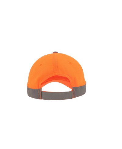Schirm mit farblich abgesetzter Einfassung. Verschluss: reflektierendes Materialband und Klettverschluss.