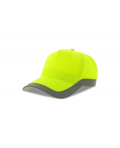 Wasserfeste Mütze mit hoher Sichtbarkeit, hergestellt aus recyceltem, reflektierendem Material, UV 50+ Schutz und einer PFC-freien, wasserabweisenden Behandlung. Die perfekte Lösung für alle, die Sicherheit bei schlechten Lichtverhältnissen oder maximaler Sonneneinstrahlung suchen. Der graue Unterschirm kontrastiert mit der fluoreszierenden Außenfarbe und sorgt für Sichtbarkeit, ohne die Augen zu belasten. Ideal zur Vervollständigung Ihrer Arbeitskleidung.