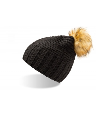 Weiche und elegante Mütze mit Bommel aus umweltfreundlichem Pelz, mit MADE IN ITALY-Garn aus gemischter Wolle.