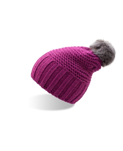 Weiche und elegante Mütze mit Bommel aus umweltfreundlichem Pelz, mit MADE IN ITALY-Garn aus gemischter Wolle.