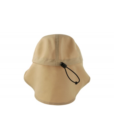 Outdoor-Ausflugskappe aus recyceltem Polyester mit UV-Schutz. Unstrukturierte Frontplatten und gebogenes Visier. Nacken-Sonnenblende auf der Rückseite mit verstellbarem Verschluss mit elastischen Kordeln.