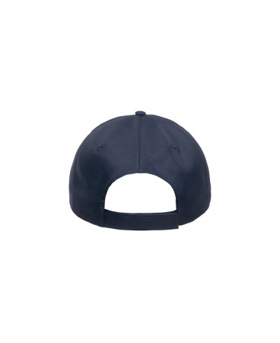 Klassische strukturierte Baseballkappe mit fünf Bahnen aus 100 % zertifiziertem recyceltem Polyester. Vollständige Naht, gebogener Schirm und 4 Ösen.