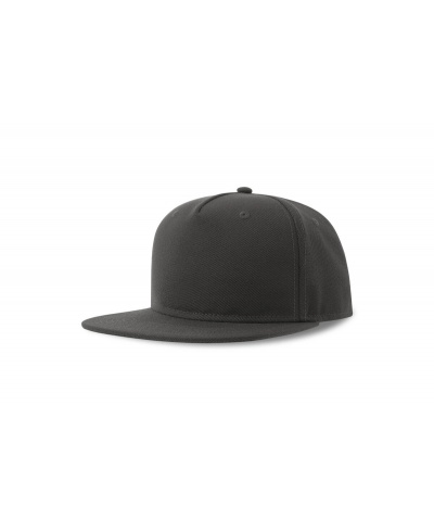 Die 5-Panel-Version des Snap aus recyceltem Polyester-Twill hat einen flachen Schirm und einen recycelten Snapback-Verschluss, typisch für die Streetwear-Kultur.