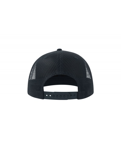 Flacher Schirm, PVC-Verschluss, Schweißband: 35 % Baumwolle / 65 % Polyester, Kontrastschirm, genähte Lüftungsschlitze, hinteres Netz, seitliches Netz, strukturiertes Frontpanel, 6 Nähte am Schirm.