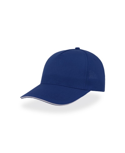 5-Panel-Cap aus 100 % leichter Baumwolle mit kontrastierendem Sandwich auf dem Schirm, geeignet für alle Events und die Werbewelt. Klettverschluss hinten.