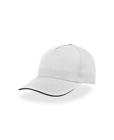 5-Panel-Cap aus 100 % leichter Baumwolle mit kontrastierendem Sandwich auf dem Schirm, geeignet für alle Events und die Werbewelt. Klettverschluss hinten.