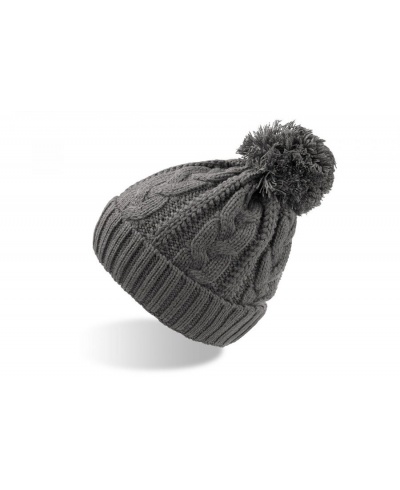 Warme Mütze mit Zopfmuster, aus dickem Garn und Fleecefutter, bereichert durch einen großen Bommel, ideal für den trendigen urbanen Stil.