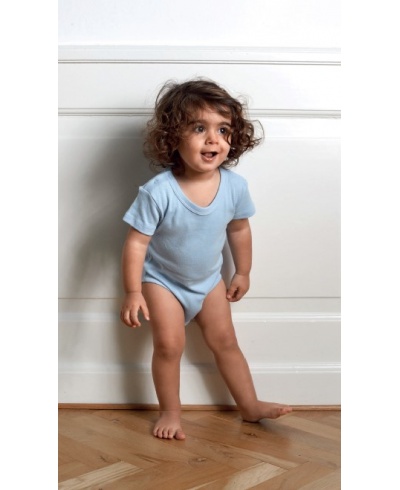 Material: 100% Bio-Fairtrade-Baumwolle, 1x1 Rippenstrick; Gewicht: 220 g/m²; Dehnbarer Rippenstrick, kurze Ärmel. Druckknöpfe an Schulter und Boden. Rippengestrickte Kanten an Hals- und Beinöffnungen; Zertifikate: OEKO-TEX® STANDARD 100, 100% CERTIFIED ORGANIC COTTON, FAIR WEAR, EU ECOLABEL, SA8000, NEUTRAL® RESPONSIBILITY