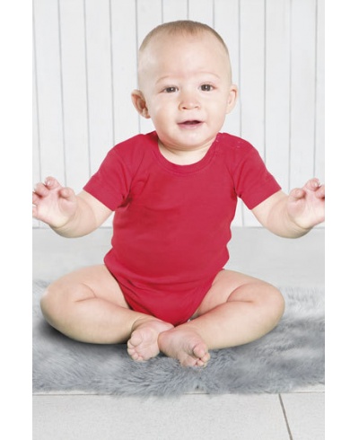 Baby Body, kurzarm. Kragen aus Lycra. Haken und Ösen an der Schulter und unten. Gerippter Abschluss 1x1.