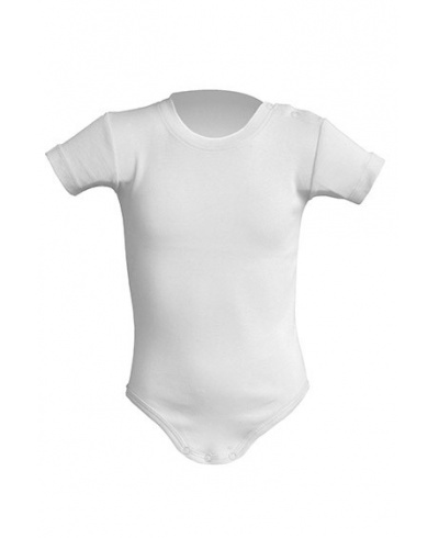 Baby Body, kurzarm. Kragen aus Lycra. Haken und Ösen an der Schulter und unten. Gerippter Abschluss 1x1.