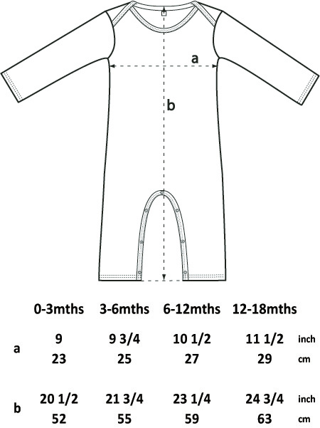 | Extra Größen: | 0-3, 3-6, 6-12, 12-18 months |