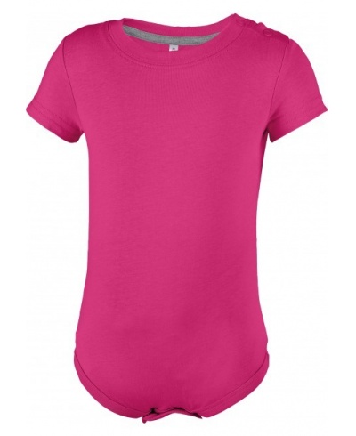 100% Baumwoll-Jersey, mit Enzymen vorgewaschen. Verschluß am Halsausschnitt mit zwei Schulterknöpfen. 3 Druckknöpfe zum Verschluß im Schritt. Rippstrickbündchen am Hals und unten.