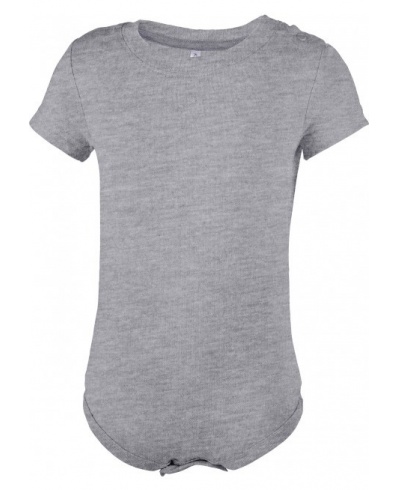100% Baumwoll-Jersey, mit Enzymen vorgewaschen. Verschluß am Halsausschnitt mit zwei Schulterknöpfen. 3 Druckknöpfe zum Verschluß im Schritt. Rippstrickbündchen am Hals und unten.