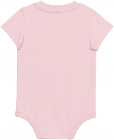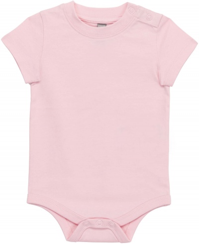 100% Baumwoll-Jersey, mit Enzymen vorgewaschen. Verschluß am Halsausschnitt mit zwei Schulterknöpfen. 3 Druckknöpfe zum Verschluß im Schritt. Rippstrickbündchen am Hals und unten.