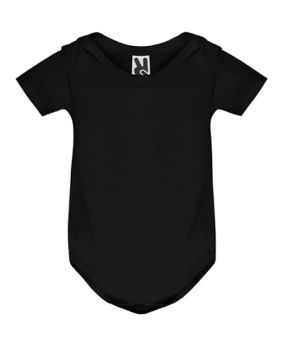Baby Strampler. 1x1 Rippstrick-Bündchen am Rundhals und unten. Druckknopfverschluss im Schritt. Überlappende Schulterpartie für besonders leichtes An- und Ausziehen.