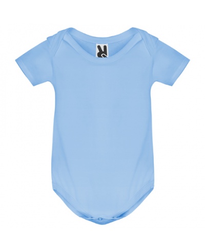 Baby Strampler. 1x1 Rippstrick-Bündchen am Rundhals und unten. Druckknopfverschluss im Schritt. Überlappende Schulterpartie für besonders leichtes An- und Ausziehen.