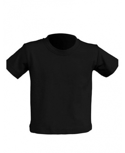Baby Kurzarm T-Shirt. Lycra Rippenhals. Seitennähte am Körper. Schulter zu Schulter Band.