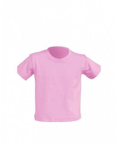 Baby Kurzarm T-Shirt. Lycra Rippenhals. Seitennähte am Körper. Schulter zu Schulter Band.