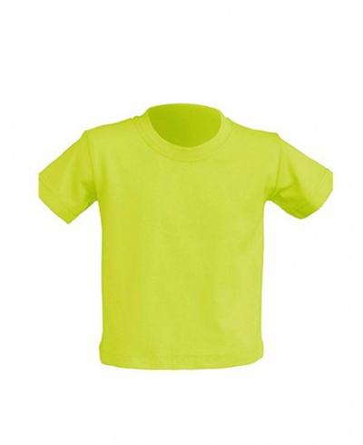 Baby Kurzarm T-Shirt. Lycra Rippenhals. Seitennähte am Körper. Schulter zu Schulter Band.
