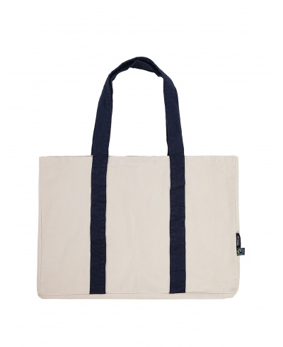 Große Einkaufstasche mit langen Henkeln, Innentasche (24 cm x 21 cm). Diese Tasche ist aus unserer neuen und besonders schweren 300 g/m² Panama-Webqualität gefertigt und verfügt über einen YKK-Reißverschluss sowie seitliche Neutral®- und Fairtrade-Flaggenetiketten