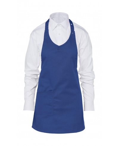 Diese bequeme kurze Latzschürze hat einen V-Ausschnitt mit verstellbarem Nackenband mit Druckknöpfen und ist dank der aufgesetzten Tasche, dem pflegeleichten Polyester-Baumwollstoff und der hervorragenden Waschbarkeit – 60° für alle Farben – schick und funktional. Es ist eine praktische und langlebige Wahl.