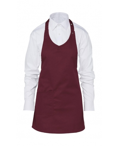 Diese bequeme kurze Latzschürze hat einen V-Ausschnitt mit verstellbarem Nackenband mit Druckknöpfen und ist dank der aufgesetzten Tasche, dem pflegeleichten Polyester-Baumwollstoff und der hervorragenden Waschbarkeit – 60° für alle Farben – schick und funktional. Es ist eine praktische und langlebige Wahl.