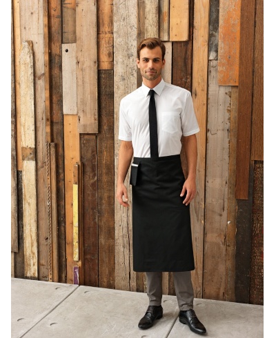 Lange Bistro-Schürze mit Schreibblock-Tasche rechts, die am Taillenband der Schürze befestigt ist. Die Tasche hat zudem ein praktisches Stiftefach – ideal für Restaurantpersonal.
